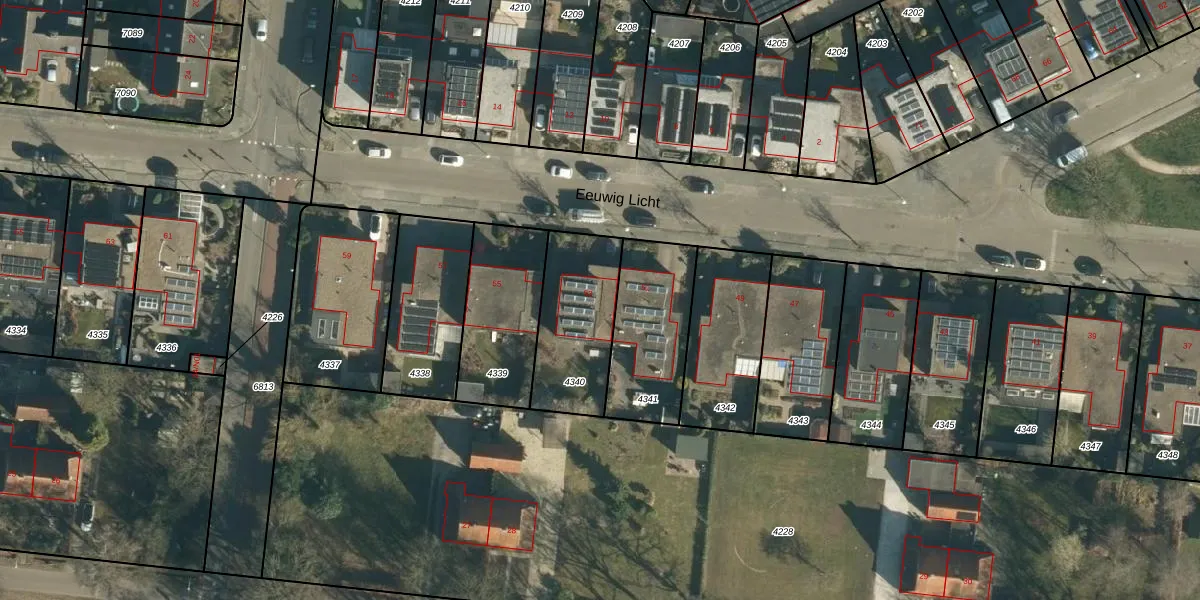 Eeuwig Licht 53 is gelegen op kadastraal perceel WSL01W4340. Deze kadastrale aanduiding is uniek en wordt gebruikt door het Kadaster om eigendomsrechten en andere zakelijke rechten vast te leggen. Het perceel maakt onderdeel uit van de kadastrale gemeente Woensel.