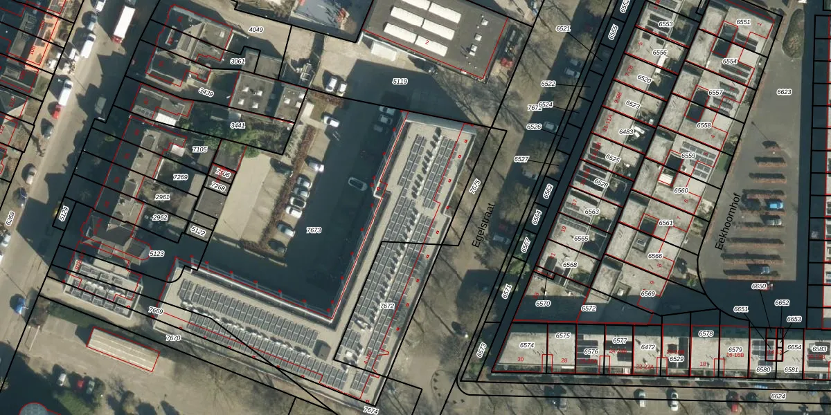 Egelstraat 102 is gelegen op kadastraal perceel WSL01G7673. Deze kadastrale aanduiding is uniek en wordt gebruikt door het Kadaster om eigendomsrechten en andere zakelijke rechten vast te leggen. Het perceel maakt onderdeel uit van de kadastrale gemeente Woensel.