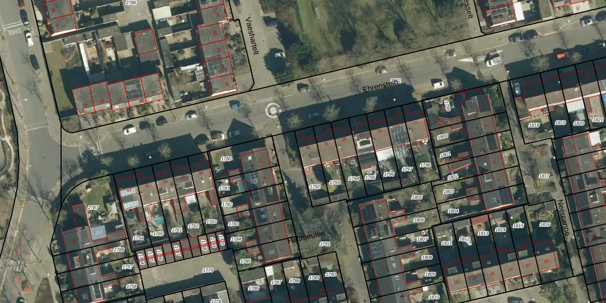 Gebruik de zoekbalk of klik op een perceel voor informatie over de adressen binnen dit perceel.
