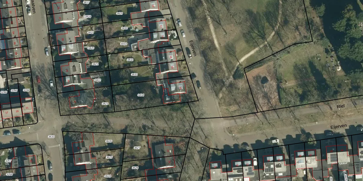 Het perceel waarop Eijerven 20 staat heeft een oppervlakte van 656 m². Dit is een groot perceel. De perceeloppervlakte wordt geregistreerd door het Kadaster. Gedetailleerde informatie over de maten van dit perceel kunt u vinden in het rapport Kadastrale kaart met maatvoering van Eijerven 20.