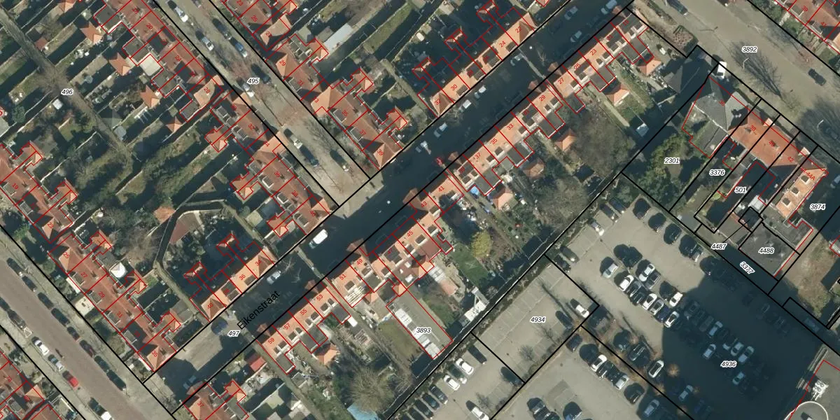 Eikenstraat 43 is gelegen op kadastraal perceel STR03C3893. Deze kadastrale aanduiding is uniek en wordt gebruikt door het Kadaster om eigendomsrechten en andere zakelijke rechten vast te leggen. Het perceel maakt onderdeel uit van de kadastrale gemeente Strijp.