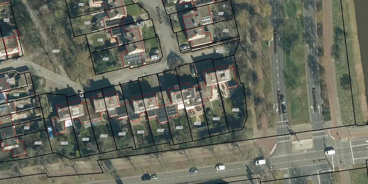 Het perceel waarop Eimerick 17 staat heeft een oppervlakte van 417 m². Dit is een groot perceel. De perceeloppervlakte wordt geregistreerd door het Kadaster. Gedetailleerde informatie over de maten van dit perceel kunt u vinden in het rapport Kadastrale kaart met maatvoering van Eimerick 17.
