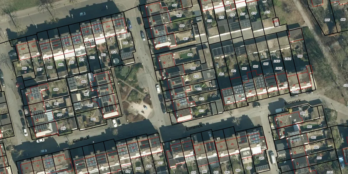 Het perceel waarop Eimerick 32 staat heeft een oppervlakte van 202 m². Dit is een middelgroot perceel. De perceeloppervlakte wordt geregistreerd door het Kadaster. Gedetailleerde informatie over de maten van dit perceel kunt u vinden in het rapport Kadastrale kaart met maatvoering van Eimerick 32.