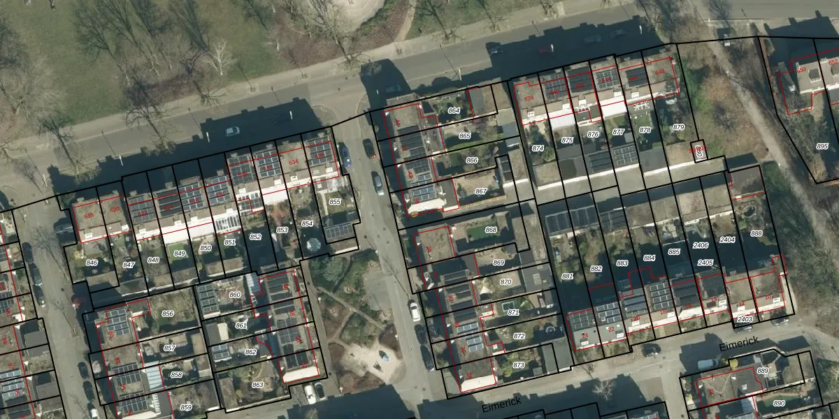Het perceel waarop Eimerick 38 staat heeft een oppervlakte van 280 m². Dit is een middelgroot perceel. De perceeloppervlakte wordt geregistreerd door het Kadaster. Gedetailleerde informatie over de maten van dit perceel kunt u vinden in het rapport Kadastrale kaart met maatvoering van Eimerick 38.