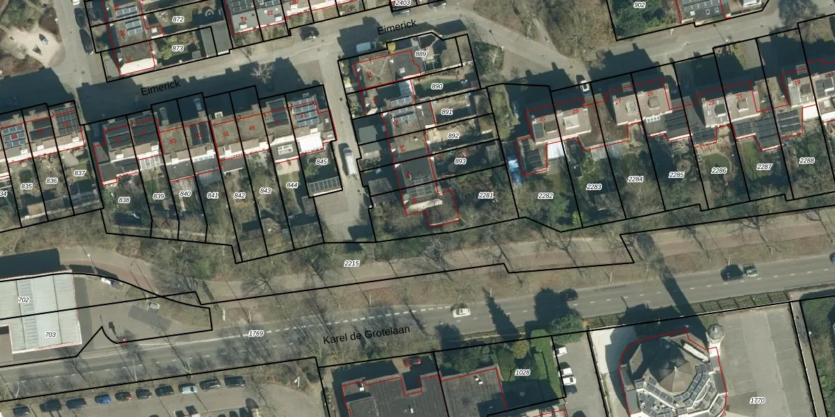 Het perceel waarop Eimerick 43 staat heeft een oppervlakte van 429 m². Dit is een groot perceel. De perceeloppervlakte wordt geregistreerd door het Kadaster. Gedetailleerde informatie over de maten van dit perceel kunt u vinden in het rapport Kadastrale kaart met maatvoering van Eimerick 43.