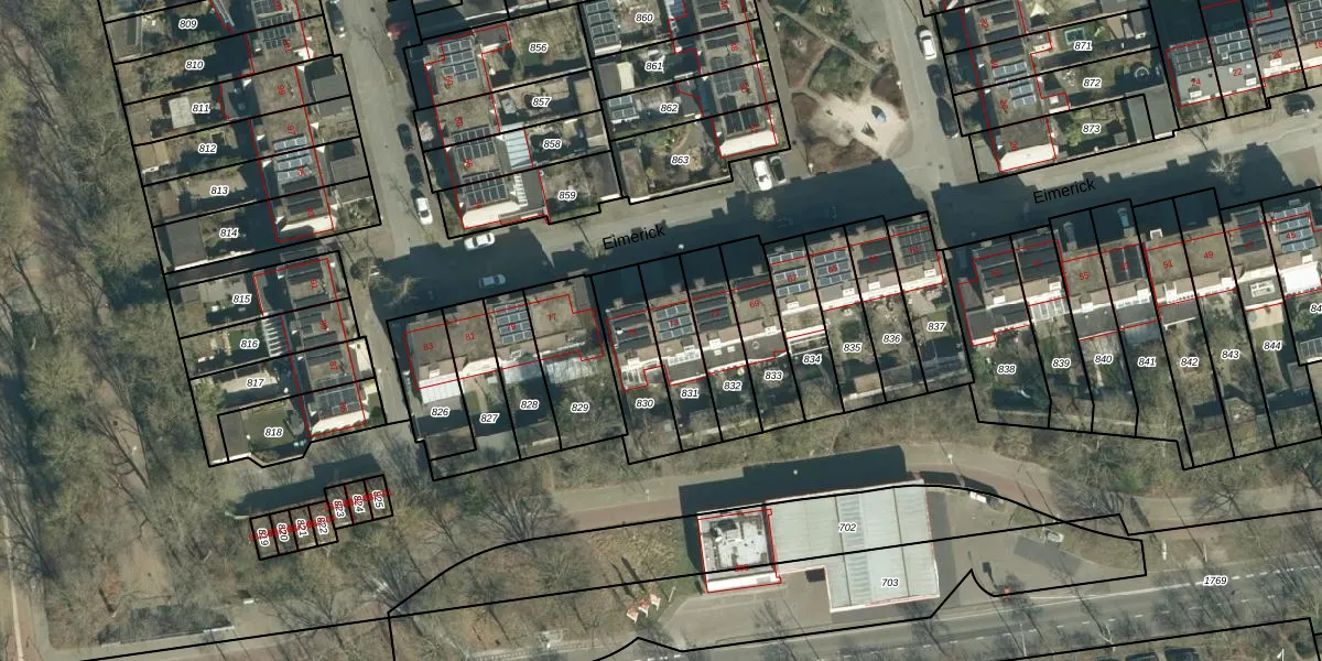Het perceel waarop Eimerick 73 staat heeft een oppervlakte van 185 m². Dit is een middelgroot perceel. De perceeloppervlakte wordt geregistreerd door het Kadaster. Gedetailleerde informatie over de maten van dit perceel kunt u vinden in het rapport Kadastrale kaart met maatvoering van Eimerick 73.