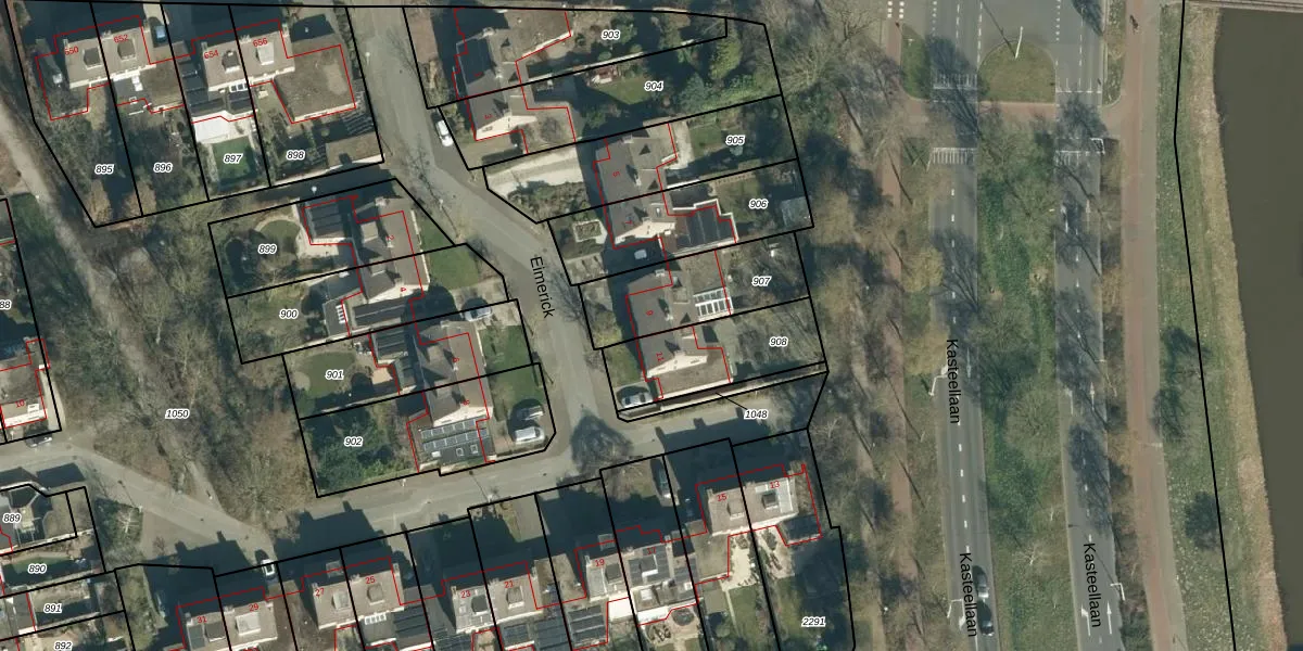 Het perceel waarop Eimerick 9 staat heeft een oppervlakte van 356 m². Dit is een groot perceel. De perceeloppervlakte wordt geregistreerd door het Kadaster. Gedetailleerde informatie over de maten van dit perceel kunt u vinden in het rapport Kadastrale kaart met maatvoering van Eimerick 9.