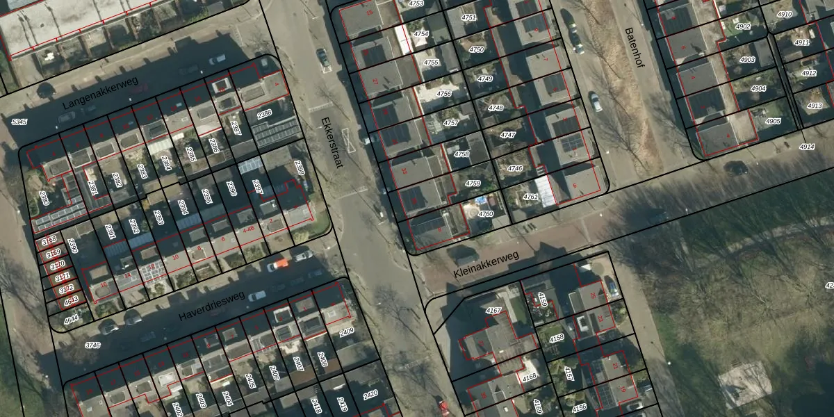 Het perceel waarop Ekkerstraat 35 staat heeft een oppervlakte van 196 m². Dit is een middelgroot perceel. De perceeloppervlakte wordt geregistreerd door het Kadaster. Gedetailleerde informatie over de maten van dit perceel kunt u vinden in het rapport Kadastrale kaart met maatvoering van Ekkerstraat 35.