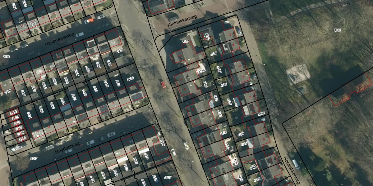 Gebruik de zoekbalk of klik op een perceel voor informatie over de adressen binnen dit perceel.