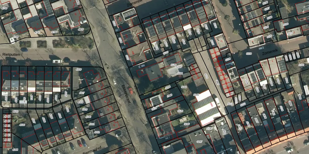 Het perceel waarop Ekkerstraat 65 staat heeft een oppervlakte van 751 m². Dit is een groot perceel. De perceeloppervlakte wordt geregistreerd door het Kadaster. Gedetailleerde informatie over de maten van dit perceel kunt u vinden in het rapport Kadastrale kaart met maatvoering van Ekkerstraat 65.