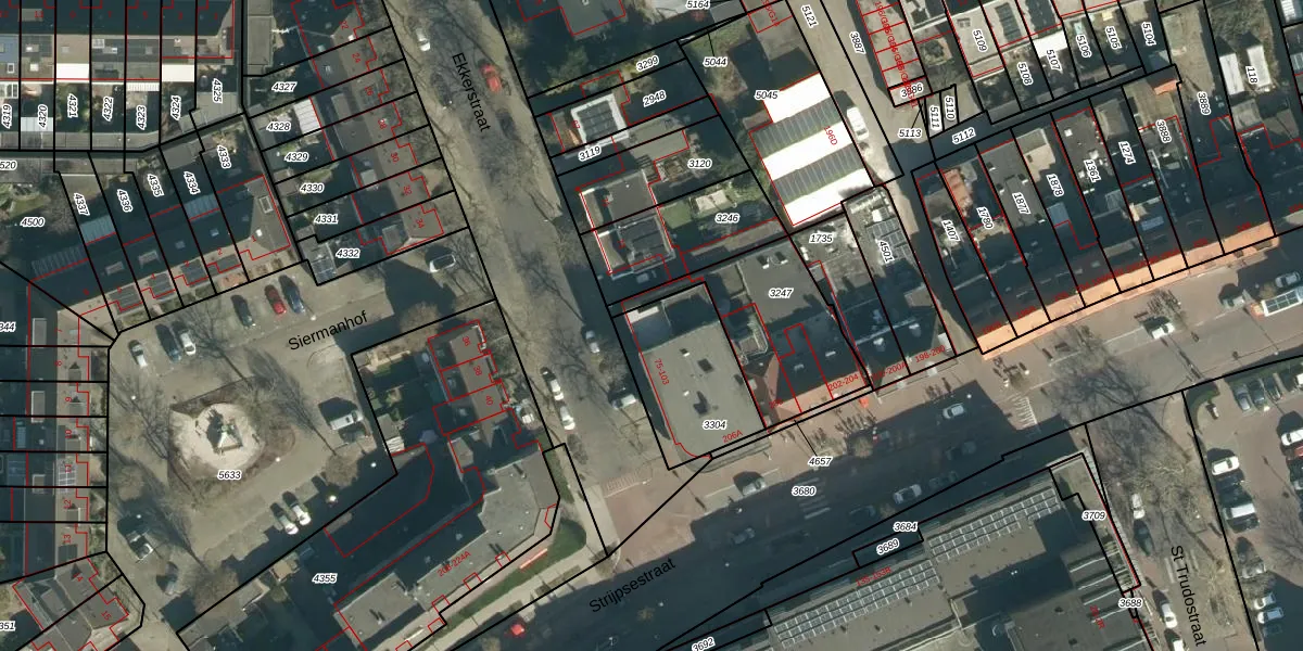 Ekkerstraat 77 is gelegen op kadastraal perceel STR03C3304. Deze kadastrale aanduiding is uniek en wordt gebruikt door het Kadaster om eigendomsrechten en andere zakelijke rechten vast te leggen. Het perceel maakt onderdeel uit van de kadastrale gemeente Strijp.