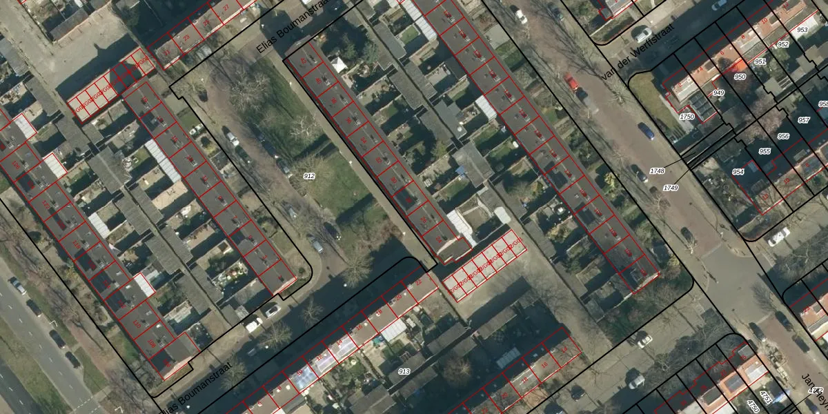 Elias Boumanstraat 28 is gelegen op kadastraal perceel WSL01L913. Deze kadastrale aanduiding is uniek en wordt gebruikt door het Kadaster om eigendomsrechten en andere zakelijke rechten vast te leggen. Het perceel maakt onderdeel uit van de kadastrale gemeente Woensel.