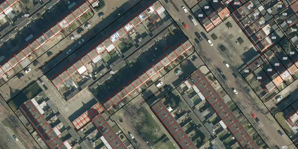 Elias Boumanstraat 33 is gelegen op kadastraal perceel WSL01L911. Deze kadastrale aanduiding is uniek en wordt gebruikt door het Kadaster om eigendomsrechten en andere zakelijke rechten vast te leggen. Het perceel maakt onderdeel uit van de kadastrale gemeente Woensel.