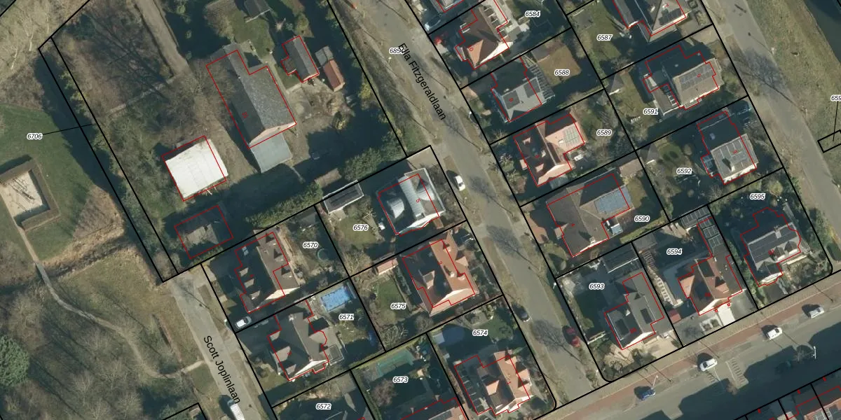 Het perceel waarop Ella Fitzgeraldlaan 5 staat heeft een oppervlakte van 606 m². Dit is een groot perceel. De perceeloppervlakte wordt geregistreerd door het Kadaster. Gedetailleerde informatie over de maten van dit perceel kunt u vinden in het rapport Kadastrale kaart met maatvoering van Ella Fitzgeraldlaan 5.