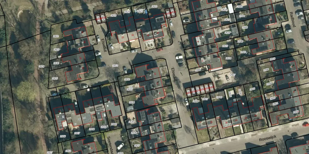Gebruik de zoekbalk of klik op een perceel voor informatie over de adressen binnen dit perceel.