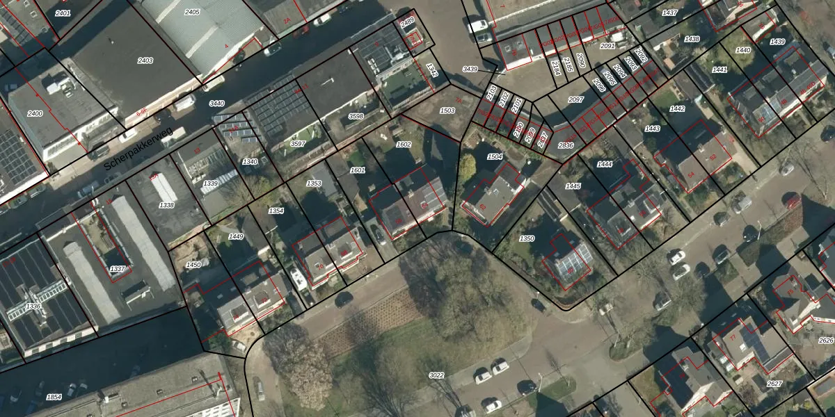 Gebruik de zoekbalk of klik op een perceel voor informatie over de adressen binnen dit perceel.