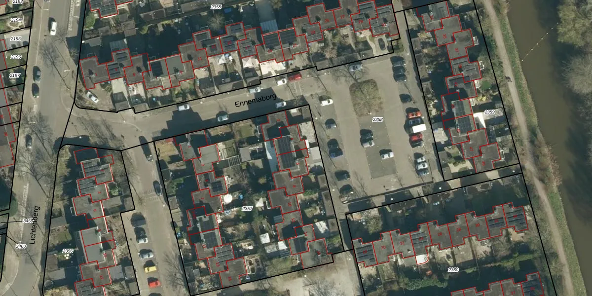 Het perceel waarop Ennemaborg 4 staat heeft een oppervlakte van 2877 m². Dit is een zeer groot perceel. De perceeloppervlakte wordt geregistreerd door het Kadaster. Gedetailleerde informatie over de maten van dit perceel kunt u vinden in het rapport Kadastrale kaart met maatvoering van Ennemaborg 4.