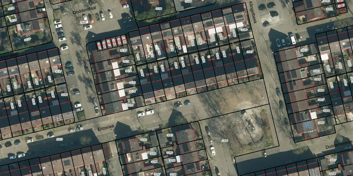 Gebruik de zoekbalk of klik op een perceel voor informatie over de adressen binnen dit perceel.