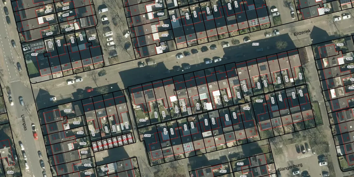 Gebruik de zoekbalk of klik op een perceel voor informatie over de adressen binnen dit perceel.