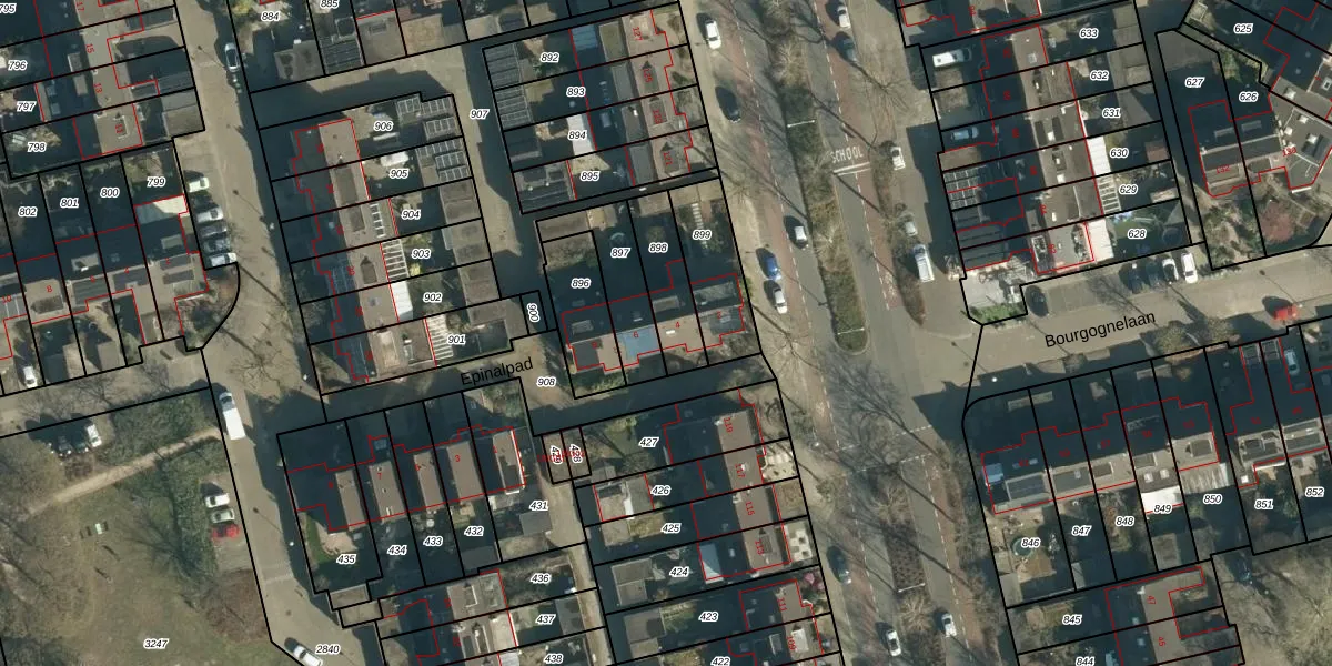 Gebruik de zoekbalk of klik op een perceel voor informatie over de adressen binnen dit perceel.