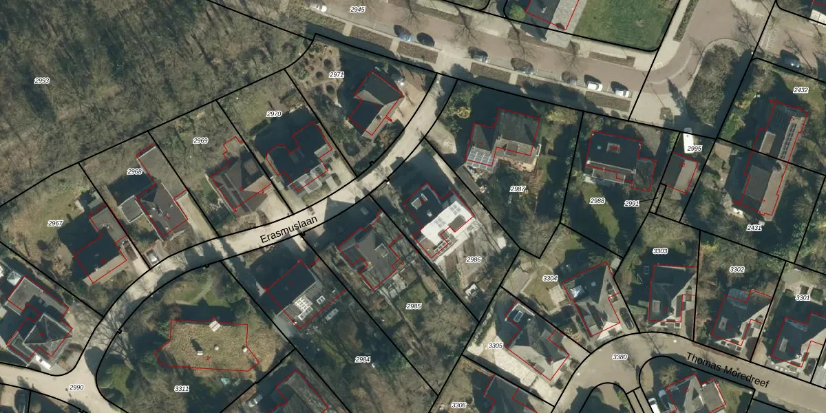 Het perceel waarop Erasmuslaan 3 staat heeft een oppervlakte van 722 m². Dit is een groot perceel. De perceeloppervlakte wordt geregistreerd door het Kadaster. Gedetailleerde informatie over de maten van dit perceel kunt u vinden in het rapport Kadastrale kaart met maatvoering van Erasmuslaan 3.