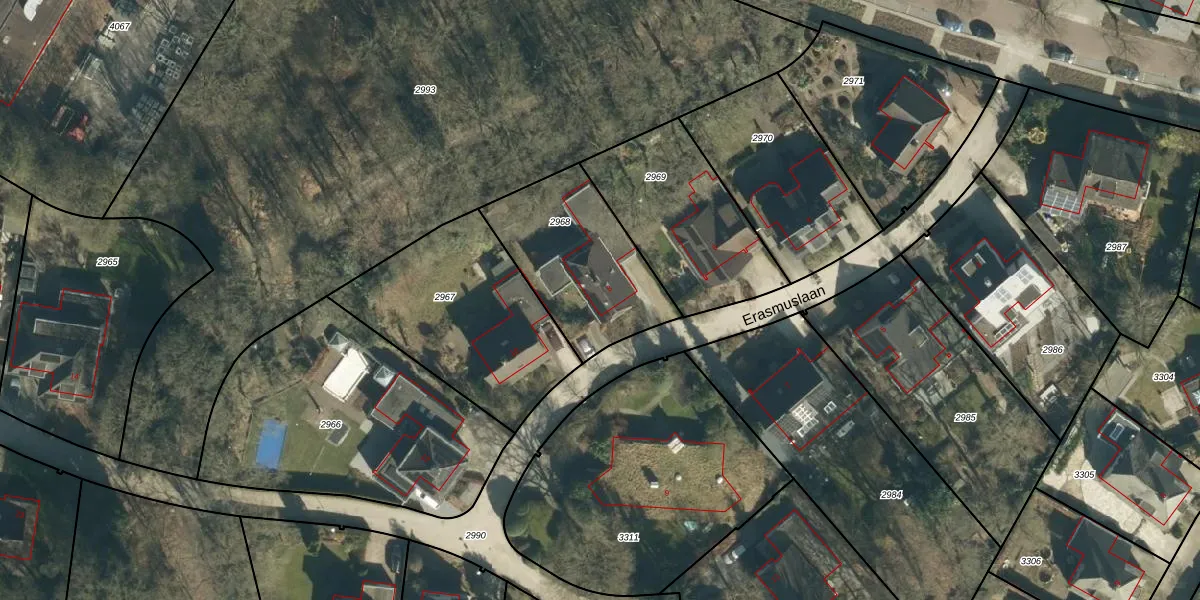 Het perceel waarop Erasmuslaan 8 staat heeft een oppervlakte van 550 m². Dit is een groot perceel. De perceeloppervlakte wordt geregistreerd door het Kadaster. Gedetailleerde informatie over de maten van dit perceel kunt u vinden in het rapport Kadastrale kaart met maatvoering van Erasmuslaan 8.