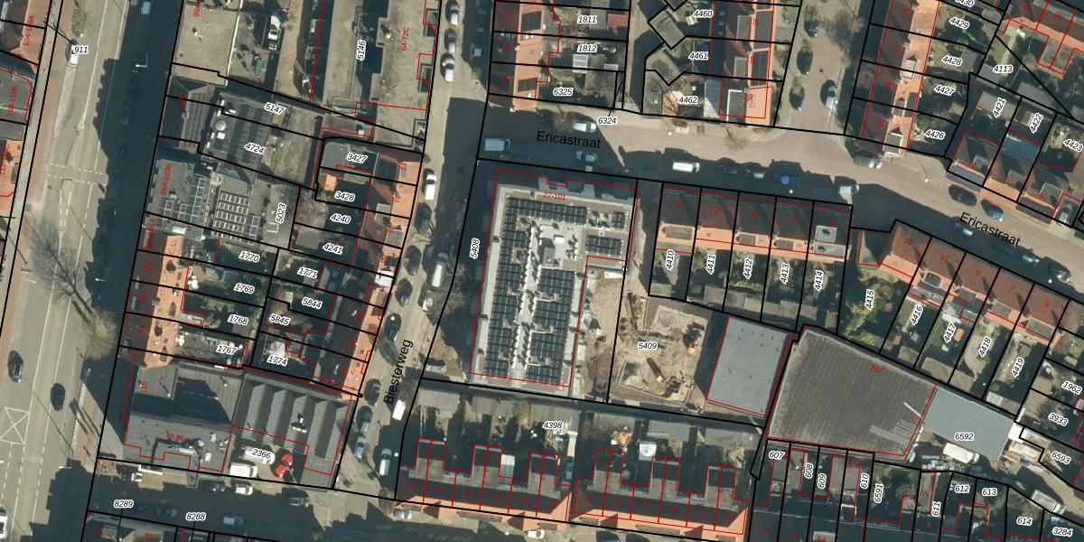 Het perceel waarop Ericastraat 101 staat heeft een oppervlakte van 1303 m². Dit is een zeer groot perceel. De perceeloppervlakte wordt geregistreerd door het Kadaster. Gedetailleerde informatie over de maten van dit perceel kunt u vinden in het rapport Kadastrale kaart met maatvoering van Ericastraat 101.