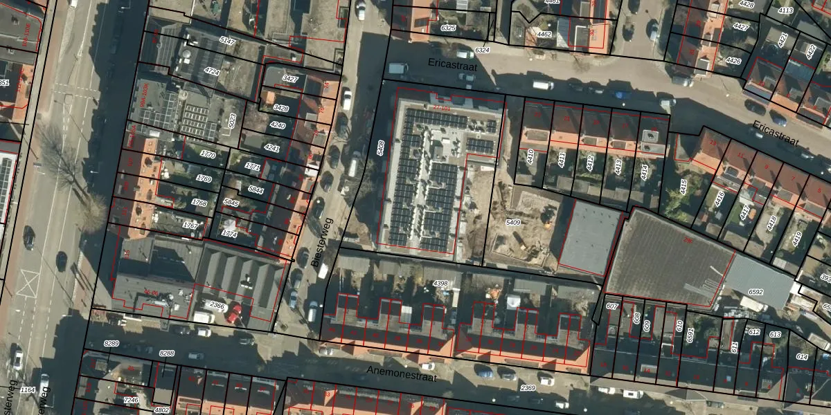 Ericastraat 51 is gelegen op kadastraal perceel STM00D5408. Deze kadastrale aanduiding is uniek en wordt gebruikt door het Kadaster om eigendomsrechten en andere zakelijke rechten vast te leggen. Het perceel maakt onderdeel uit van de kadastrale gemeente Stratum.