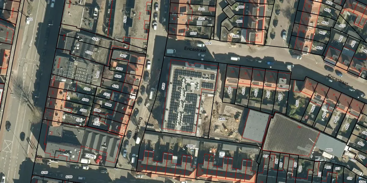 Ericastraat 83 is gelegen op kadastraal perceel STM00D5408. Deze kadastrale aanduiding is uniek en wordt gebruikt door het Kadaster om eigendomsrechten en andere zakelijke rechten vast te leggen. Het perceel maakt onderdeel uit van de kadastrale gemeente Stratum.