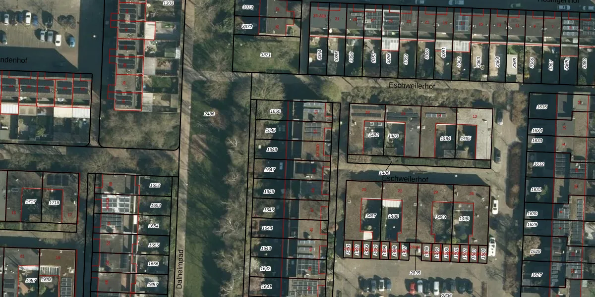 Het perceel waarop Eschweilerhof 53-B staat heeft een oppervlakte van 170 m². Dit is een middelgroot perceel. De perceeloppervlakte wordt geregistreerd door het Kadaster. Gedetailleerde informatie over de maten van dit perceel kunt u vinden in het rapport Kadastrale kaart met maatvoering van Eschweilerhof 53-B.