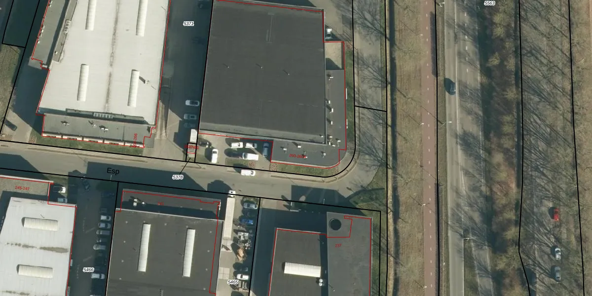 Het perceel waarop Esp 260-A staat heeft een oppervlakte van 3332 m². Dit is een zeer groot perceel. De perceeloppervlakte wordt geregistreerd door het Kadaster. Gedetailleerde informatie over de maten van dit perceel kunt u vinden in het rapport Kadastrale kaart met maatvoering van Esp 260-A.