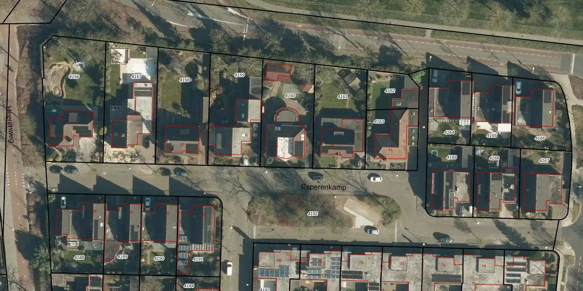 Het perceel waarop Esperenkamp 37 staat heeft een oppervlakte van 656 m². Dit is een groot perceel. De perceeloppervlakte wordt geregistreerd door het Kadaster. Gedetailleerde informatie over de maten van dit perceel kunt u vinden in het rapport Kadastrale kaart met maatvoering van Esperenkamp 37.