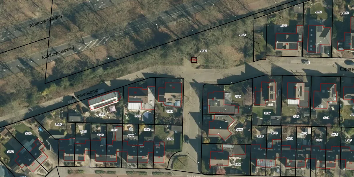 Esperenkamp 38 is gelegen op kadastraal perceel WSL01C3993. Deze kadastrale aanduiding is uniek en wordt gebruikt door het Kadaster om eigendomsrechten en andere zakelijke rechten vast te leggen. Het perceel maakt onderdeel uit van de kadastrale gemeente Woensel.