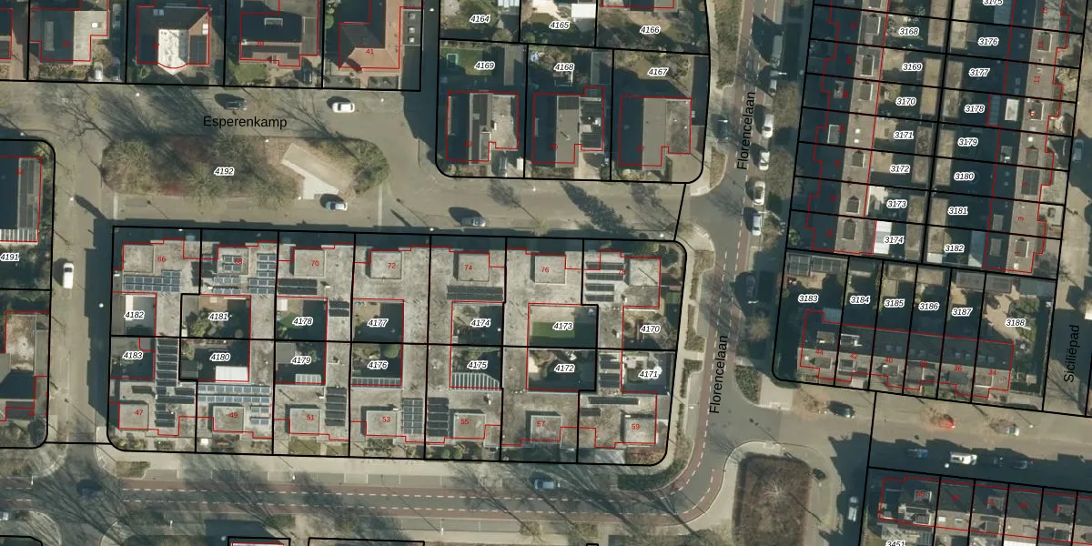 Gebruik de zoekbalk of klik op een perceel voor informatie over de adressen binnen dit perceel.