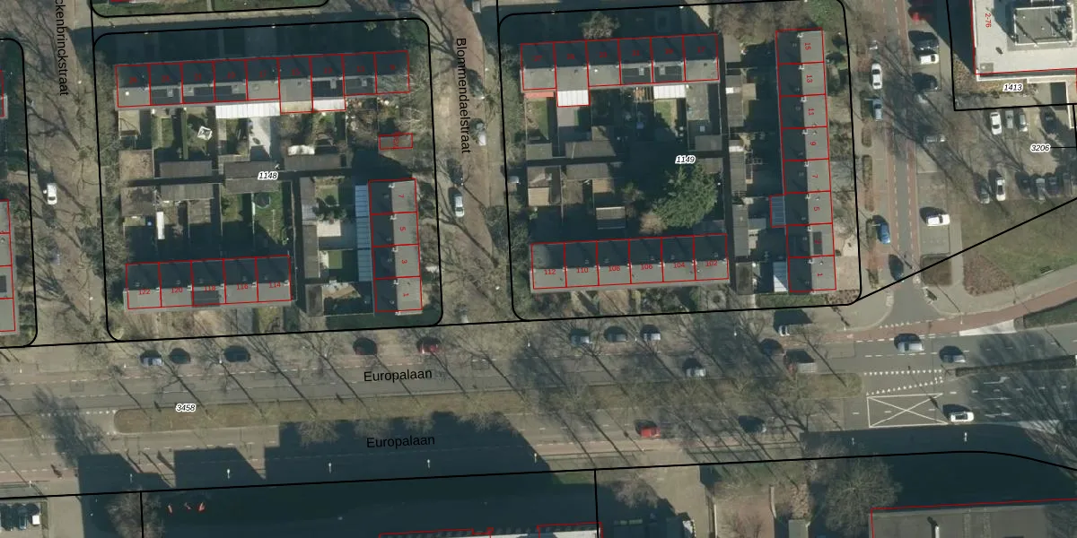 Europalaan 112 is gelegen op kadastraal perceel WSL01L1149. Deze kadastrale aanduiding is uniek en wordt gebruikt door het Kadaster om eigendomsrechten en andere zakelijke rechten vast te leggen. Het perceel maakt onderdeel uit van de kadastrale gemeente Woensel.
