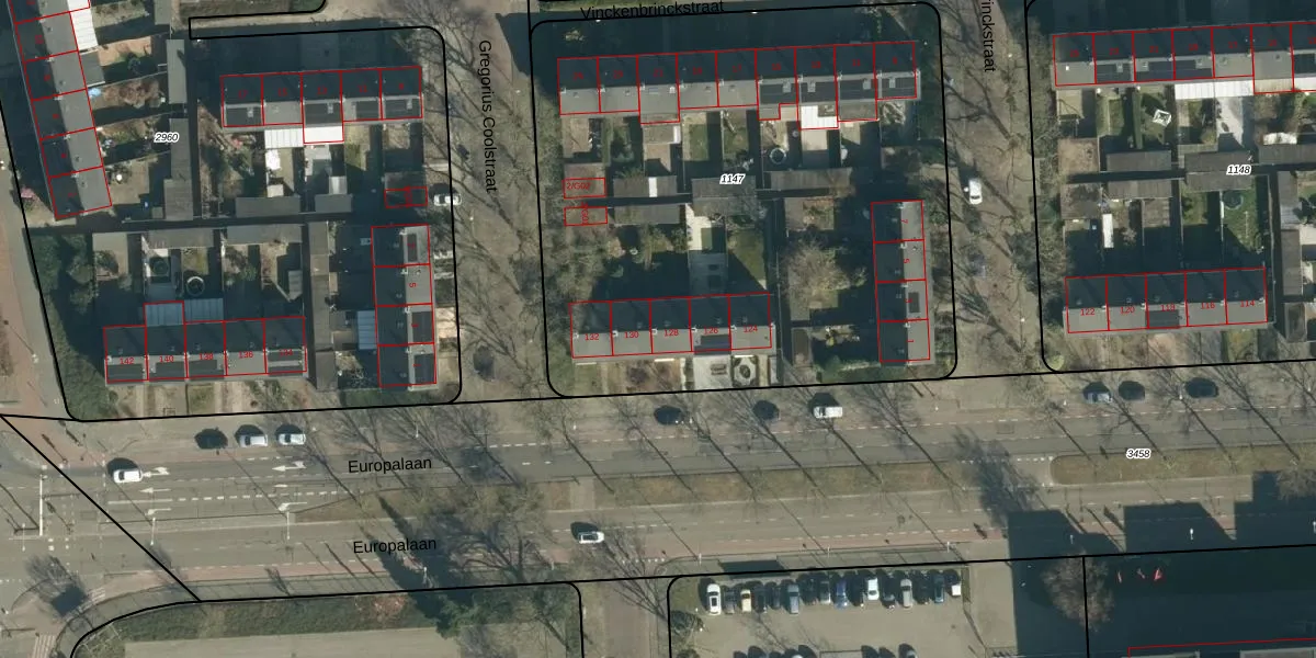 Het perceel waarop Europalaan 128 staat heeft een oppervlakte van 3564 m². Dit is een zeer groot perceel. De perceeloppervlakte wordt geregistreerd door het Kadaster. Gedetailleerde informatie over de maten van dit perceel kunt u vinden in het rapport Kadastrale kaart met maatvoering van Europalaan 128.