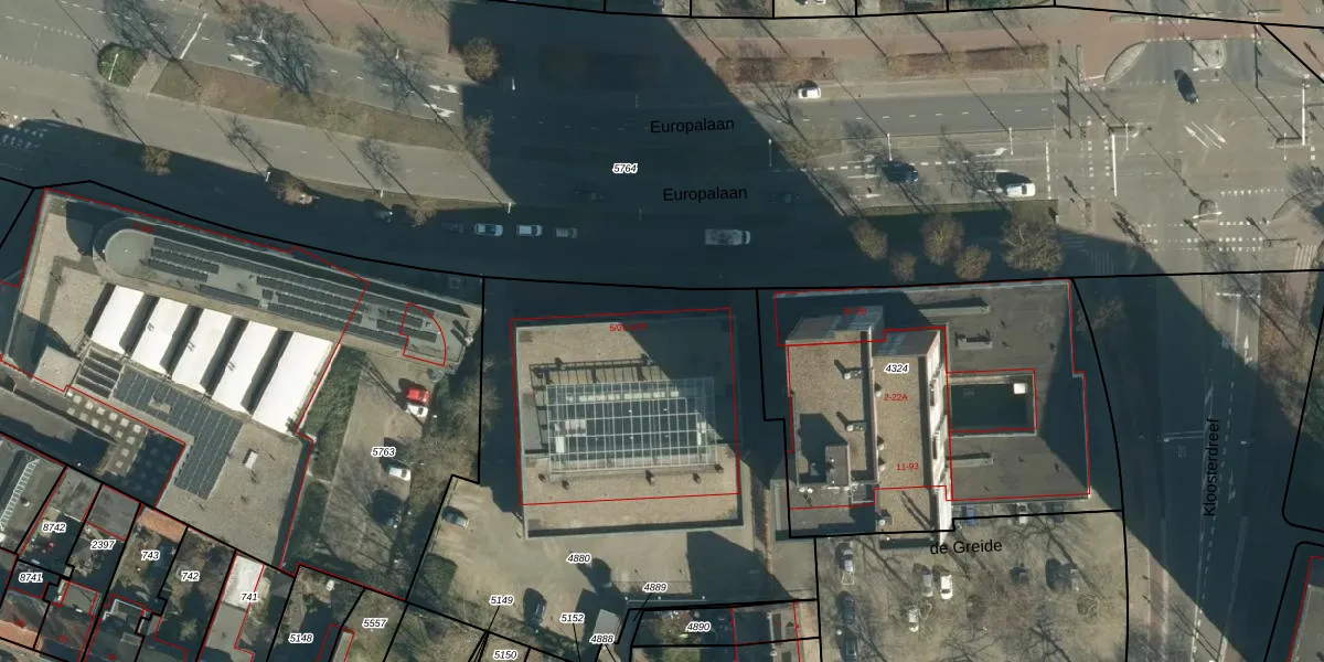Het perceel waarop Europalaan 5-17 staat heeft een oppervlakte van 2513 m². Dit is een zeer groot perceel. De perceeloppervlakte wordt geregistreerd door het Kadaster. Gedetailleerde informatie over de maten van dit perceel kunt u vinden in het rapport Kadastrale kaart met maatvoering van Europalaan 5-17.