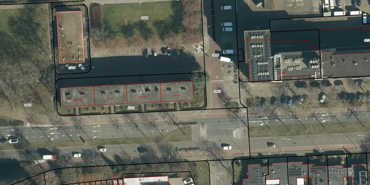 Het perceel waarop Europalaan 58 staat heeft een oppervlakte van 1612 m². Dit is een zeer groot perceel. De perceeloppervlakte wordt geregistreerd door het Kadaster. Gedetailleerde informatie over de maten van dit perceel kunt u vinden in het rapport Kadastrale kaart met maatvoering van Europalaan 58.