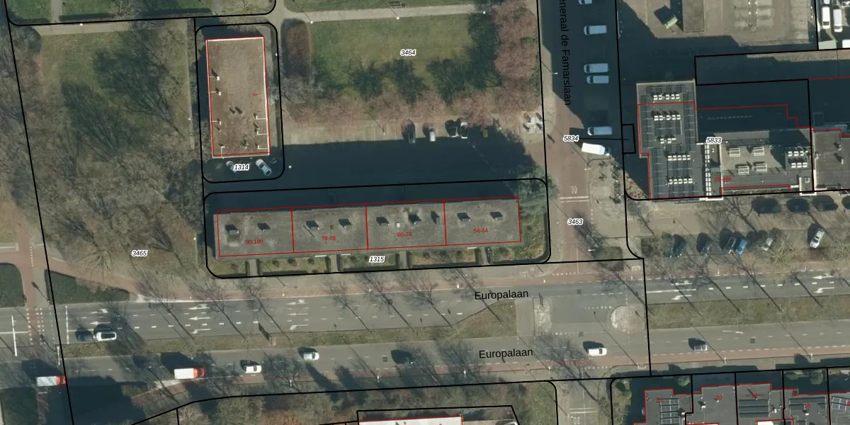 Het perceel waarop Europalaan 74 staat heeft een oppervlakte van 1612 m². Dit is een zeer groot perceel. De perceeloppervlakte wordt geregistreerd door het Kadaster. Gedetailleerde informatie over de maten van dit perceel kunt u vinden in het rapport Kadastrale kaart met maatvoering van Europalaan 74.