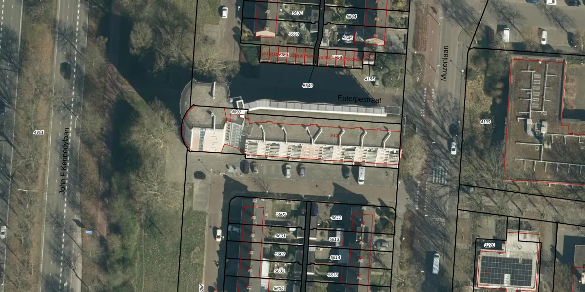 Euterpestraat 65 is gelegen op kadastraal perceel WSL01L4897. Deze kadastrale aanduiding is uniek en wordt gebruikt door het Kadaster om eigendomsrechten en andere zakelijke rechten vast te leggen. Het perceel maakt onderdeel uit van de kadastrale gemeente Woensel.