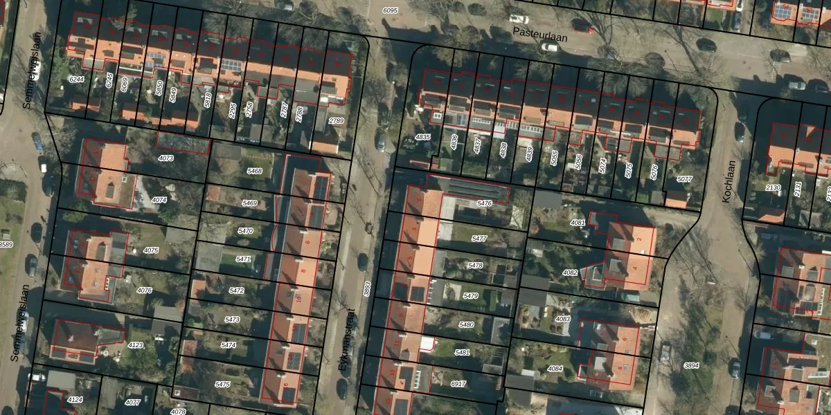 Het perceel waarop Eykmanstraat 1 staat heeft een oppervlakte van 376 m². Dit is een groot perceel. De perceeloppervlakte wordt geregistreerd door het Kadaster. Gedetailleerde informatie over de maten van dit perceel kunt u vinden in het rapport Kadastrale kaart met maatvoering van Eykmanstraat 1.