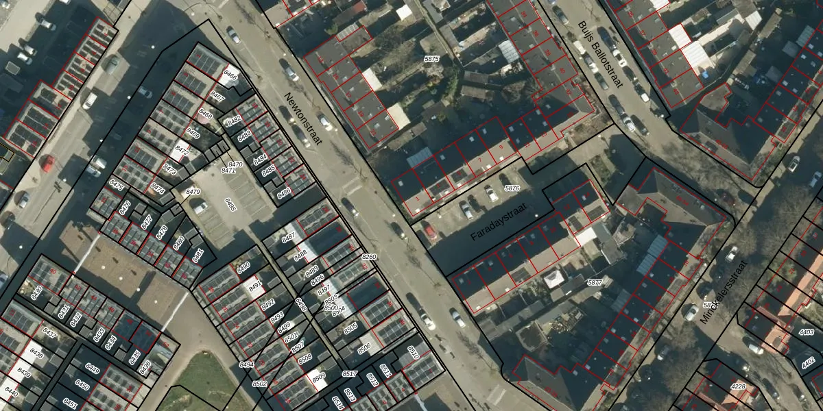 Het perceel waarop Faradaystraat 1 staat heeft een oppervlakte van 4220 m². Dit is een zeer groot perceel. De perceeloppervlakte wordt geregistreerd door het Kadaster. Gedetailleerde informatie over de maten van dit perceel kunt u vinden in het rapport Kadastrale kaart met maatvoering van Faradaystraat 1.