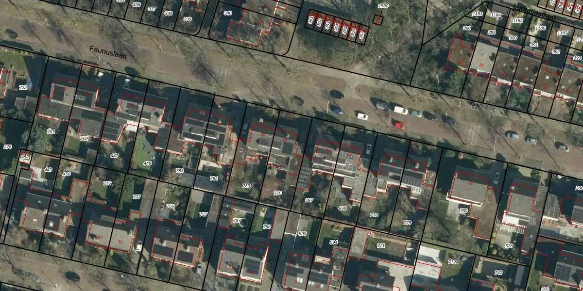 Het perceel waarop Faunuslaan 40 staat heeft een oppervlakte van 382 m². Dit is een groot perceel. De perceeloppervlakte wordt geregistreerd door het Kadaster. Gedetailleerde informatie over de maten van dit perceel kunt u vinden in het rapport Kadastrale kaart met maatvoering van Faunuslaan 40.