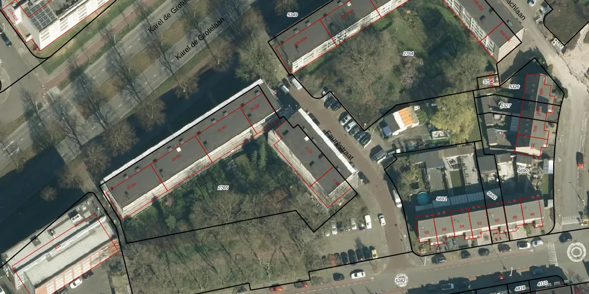 Het perceel waarop Fauréstraat 17 staat heeft een oppervlakte van 2546 m². Dit is een zeer groot perceel. De perceeloppervlakte wordt geregistreerd door het Kadaster. Gedetailleerde informatie over de maten van dit perceel kunt u vinden in het rapport Kadastrale kaart met maatvoering van Fauréstraat 17.