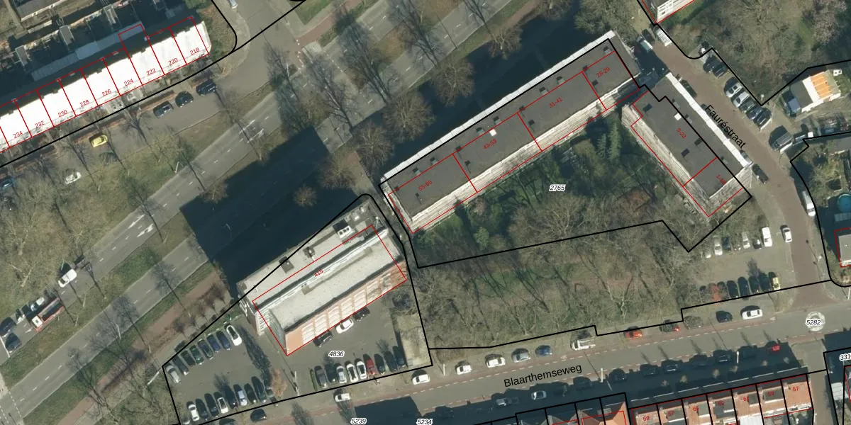 Het perceel waarop Fauréstraat 65 staat heeft een oppervlakte van 2546 m². Dit is een zeer groot perceel. De perceeloppervlakte wordt geregistreerd door het Kadaster. Gedetailleerde informatie over de maten van dit perceel kunt u vinden in het rapport Kadastrale kaart met maatvoering van Fauréstraat 65.