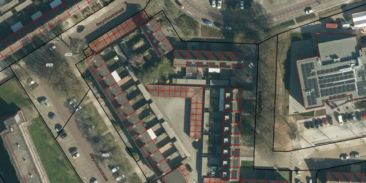 Het adres is gelegen op perceel 799 in de sectie P en de kadastrale gemeente Woensel. De kadastrale aanduiding is aldus WSL01-P-799. De oppervlakte van het perceel is 1,2 ha. Dat is groter dan gemiddeld in Woensel, waar de gemiddelde perceeloppervlakte op 1039,13 m² ligt. De grootste perceeloppervlakte in de kadastrale gemeente is 74,9 ha. De kleinste oppervlakte bedraagt 0 m². Op het perceel liggen in totaal 104 adressen. De huidige grenzen van het perceel zijn digitaal in de Basisregistratie Kadaster (BRK) geregistreerd op 25-04-2006.