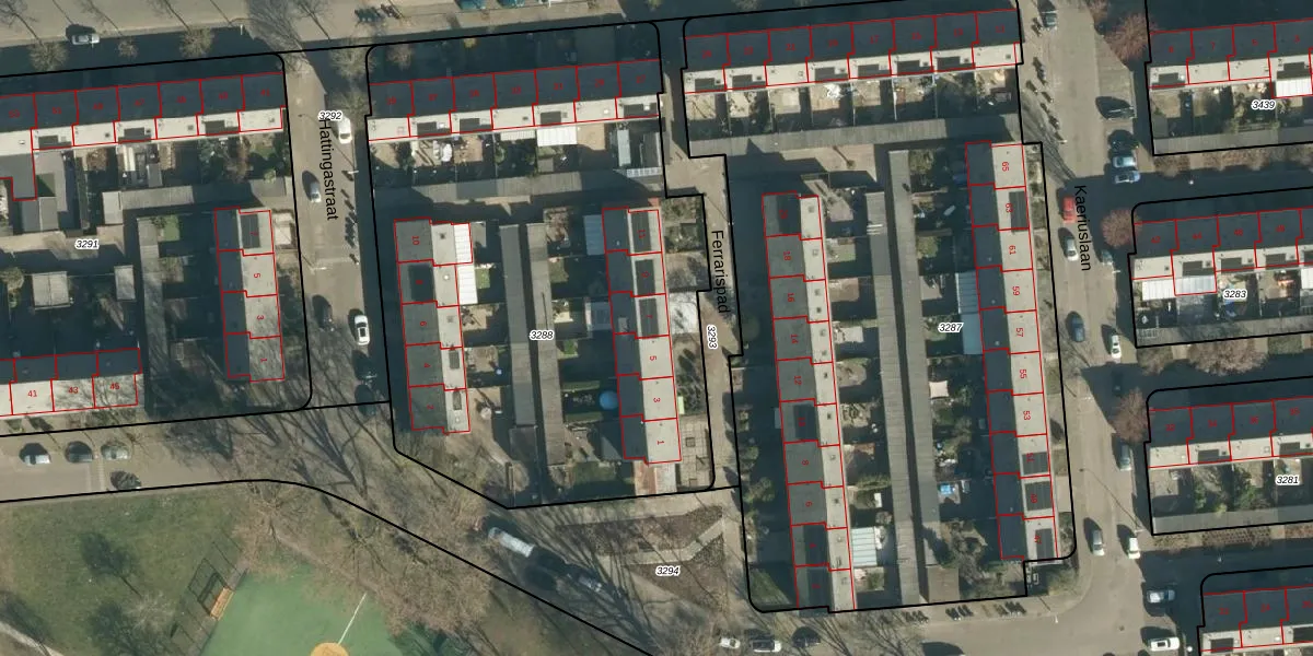 Het perceel waarop Ferrarispad 7 staat heeft een oppervlakte van 3307 m². Dit is een zeer groot perceel. De perceeloppervlakte wordt geregistreerd door het Kadaster. Gedetailleerde informatie over de maten van dit perceel kunt u vinden in het rapport Kadastrale kaart met maatvoering van Ferrarispad 7.