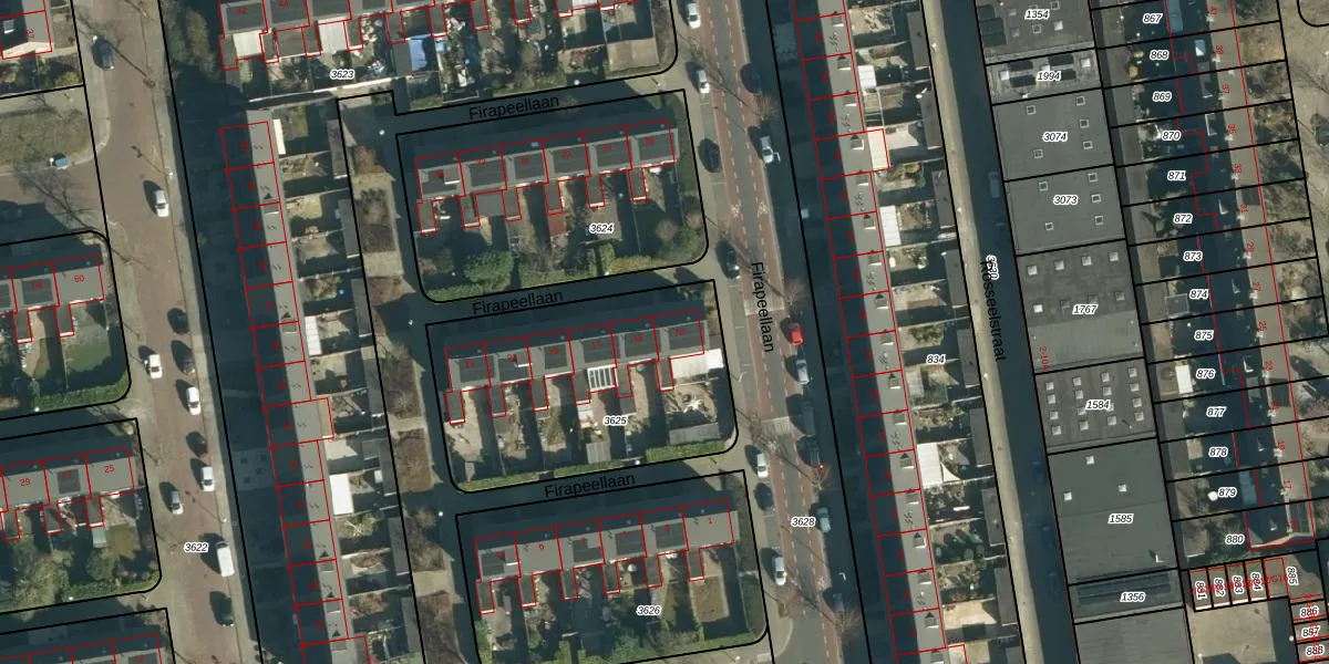 Firapeellaan 13 is gelegen op kadastraal perceel WSL01P3625. Deze kadastrale aanduiding is uniek en wordt gebruikt door het Kadaster om eigendomsrechten en andere zakelijke rechten vast te leggen. Het perceel maakt onderdeel uit van de kadastrale gemeente Woensel.