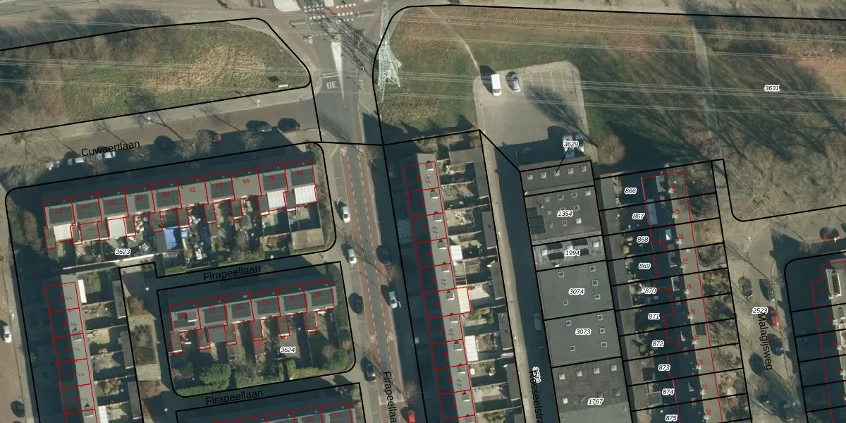 Het perceel waarop Firapeellaan 40 staat heeft een oppervlakte van 3156 m². Dit is een zeer groot perceel. De perceeloppervlakte wordt geregistreerd door het Kadaster. Gedetailleerde informatie over de maten van dit perceel kunt u vinden in het rapport Kadastrale kaart met maatvoering van Firapeellaan 40.
