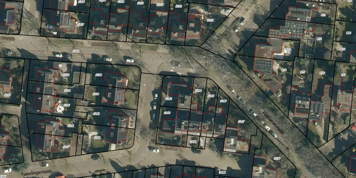 Het perceel waarop Firmamentlaan 30 staat heeft een oppervlakte van 310 m². Dit is een groot perceel. De perceeloppervlakte wordt geregistreerd door het Kadaster. Gedetailleerde informatie over de maten van dit perceel kunt u vinden in het rapport Kadastrale kaart met maatvoering van Firmamentlaan 30.